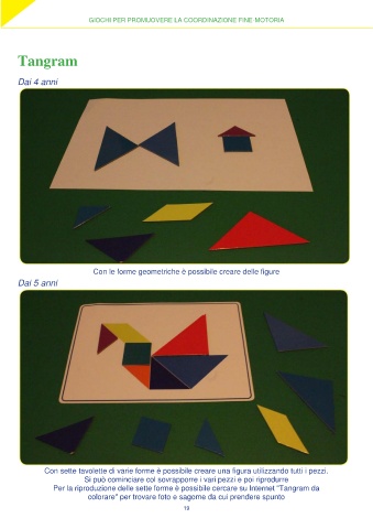 Per la riproduzione delle sette forme è possibile cercare su Internet "Tangram da