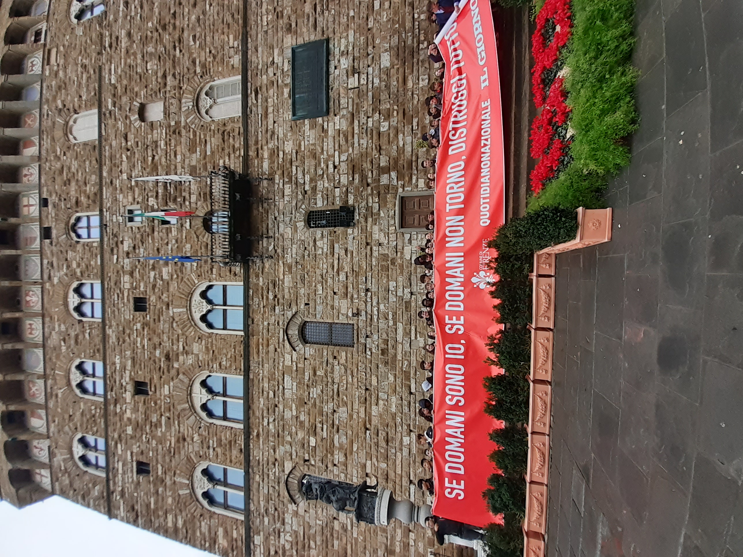 Firenze – La Promozione della Salute con gli studenti delle scuole ITT Marco Polo, Liceo Classico Michelangiolo, IT Agrario, Liceo Pascoli e Liceo Scientifico Da Vinci nel cortile di Palazzo Vecchio per “QN per le Donne. Un minuto di rumore”. Santa Maria Nuova con gli operatori sanitari impegnati in “Sventoliamo il rosso”. E punti di ascolto e iniziative dimostrative negli altri ospedali fiorentini dell’Azienda e anche all’ospedale del Mugello. Una giornata di eventi contro la violenza sulle donne nei presidi dell’Azienda e fuori, come le letture e gli interventi in Palazzo Vecchio da parte degli studenti del progetto della Promozione della Salute “GenerAzioni pari”, intervallati dalle percussioni dei ragazzi del liceo musicale Alberti Dante.