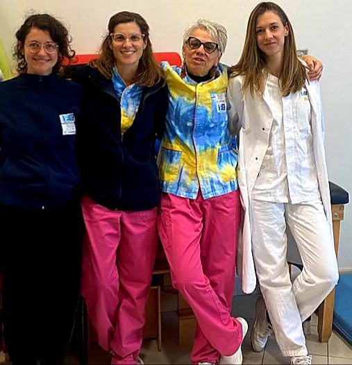 nella foto l'équipe: Sabrina Becciani (Neonatologia), Monica Borelli, Elena Mariotti, Elena Pratesi (fisioterapiste)