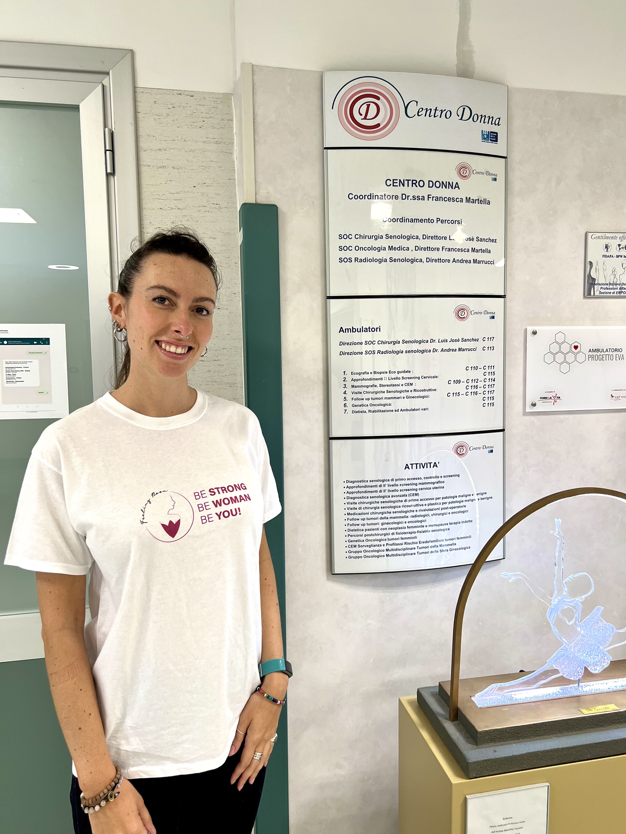 “Il Centro Donna, ormai da alcuni anni sta cercando di espandere le proprie competenze e collaborazioni per supportare in modo innovativo e a tutto tondo le donne affette da tumore, in un’ottica proattiva di genere – precisa la dottoressa Francesca Martella - Chiara e i collaboratori di Feeling Nova ci hanno colpito per l’entusiasmo, la vitalità e la voglia di avvicinarsi alle Donne promuovendo una nuova cultura del corpo femminile: autentica, libera e inclusiva. Con il dottor Pier Giorgio Giannessi, vicedirettore della Struttura operativa complessa di Oncologia Medica del San Giuseppe, abbiamo pensato di far arrivare la donazione direttamente a donne, che il tumore l’hanno superato e che in questo momento stanno finendo i trattamenti, per supportarle nella loro rinascita”.