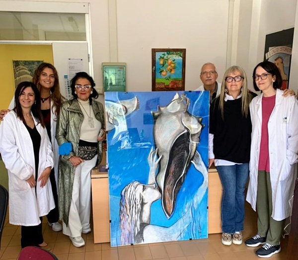 A portare i ringraziamenti all’artista per la donazione, la direttrice dell’Annunziata, Elettra Pellegrino insieme alla Direzione sanitaria.