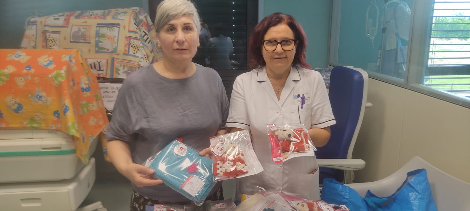 Gli indumenti sono stati consegnati alla dottoressa Stefania Magnanensi, infermiera coordinatrice del reparto, dalla delegata pistoiese di “Cuore di Maglia, la signora Cinzia Rafanelli che ha spiegato che l’Associazione lavora per sostenere e favorire, in tutte le Patologie Neonatali, il protocollo di cura ed accudimento che contribuisce allo sviluppo dei piccoli e facilita le relazioni genitoriali nelle terapie intensive.