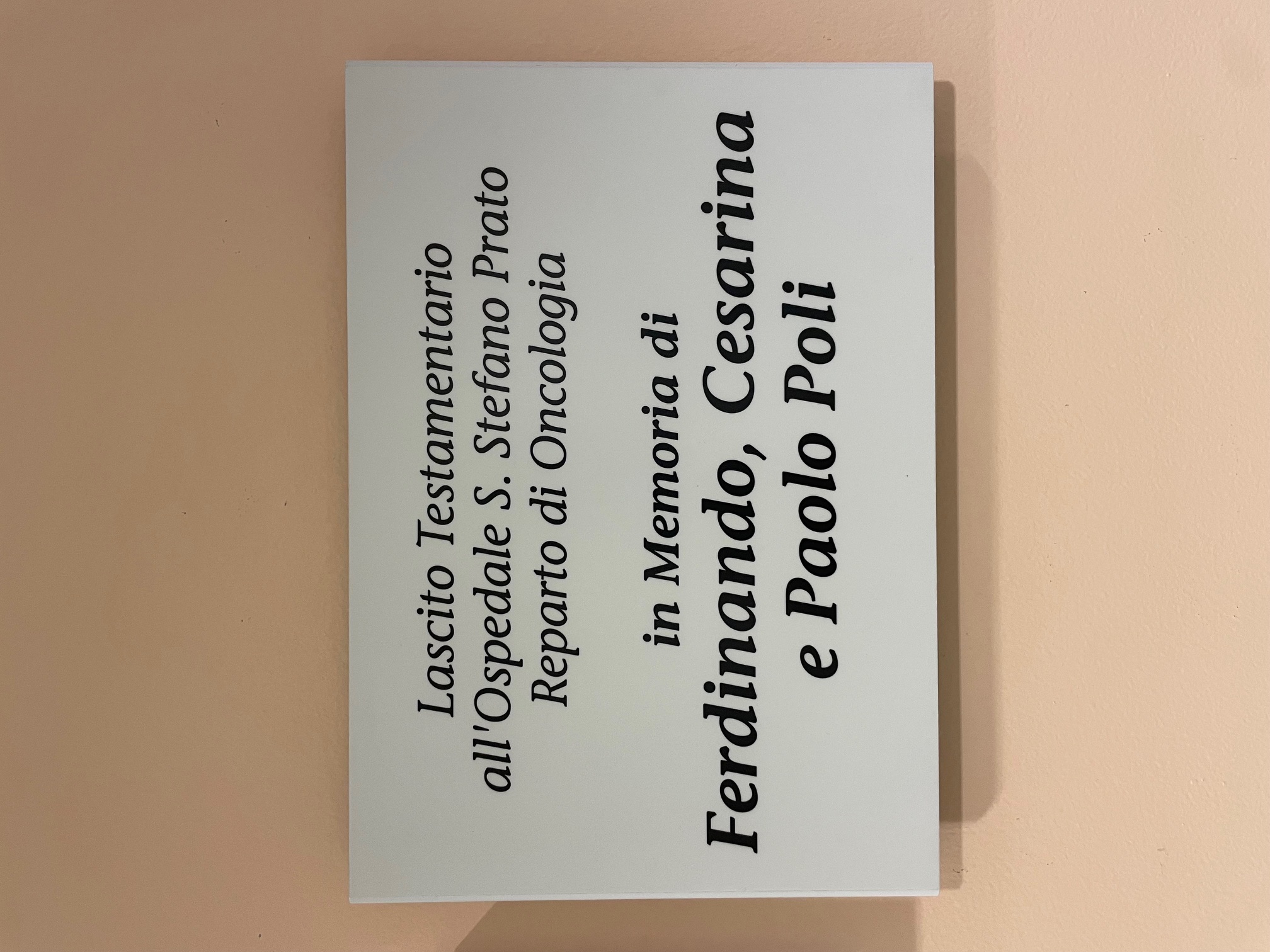 Il lascito testamentario, destinato all’Ospedale di Prato, era stato, infatti finalizzato al reparto oncologico: alla ricerca, alle terapie e all’assistenza dei malati in fase terminale.