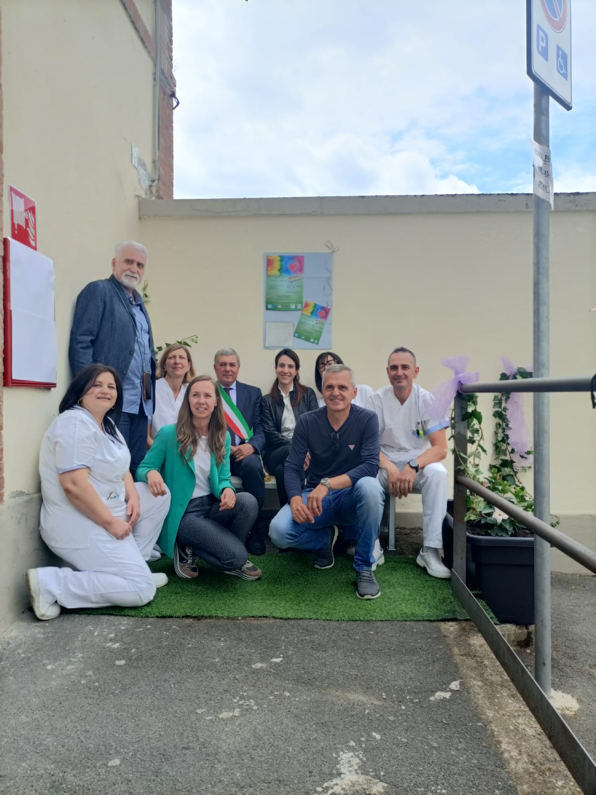 Foto di gruppo del personale della Dialisi sulla panchina.JPG 27-05-25