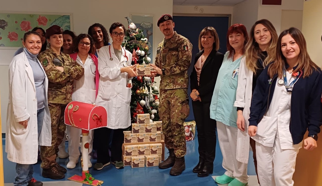 Durante questi giorni che ci stanno conducendo alle festività natalizie il 183° reggimento paracadutisti Nembo si è fatto promotore di una donazione di “Babbo Natale” di cioccolato ai bambini dei reparti di pediatria dell’Ospedale San Jacopo di Pistoia e dell’Ospedale Santo Stefano di Prato.