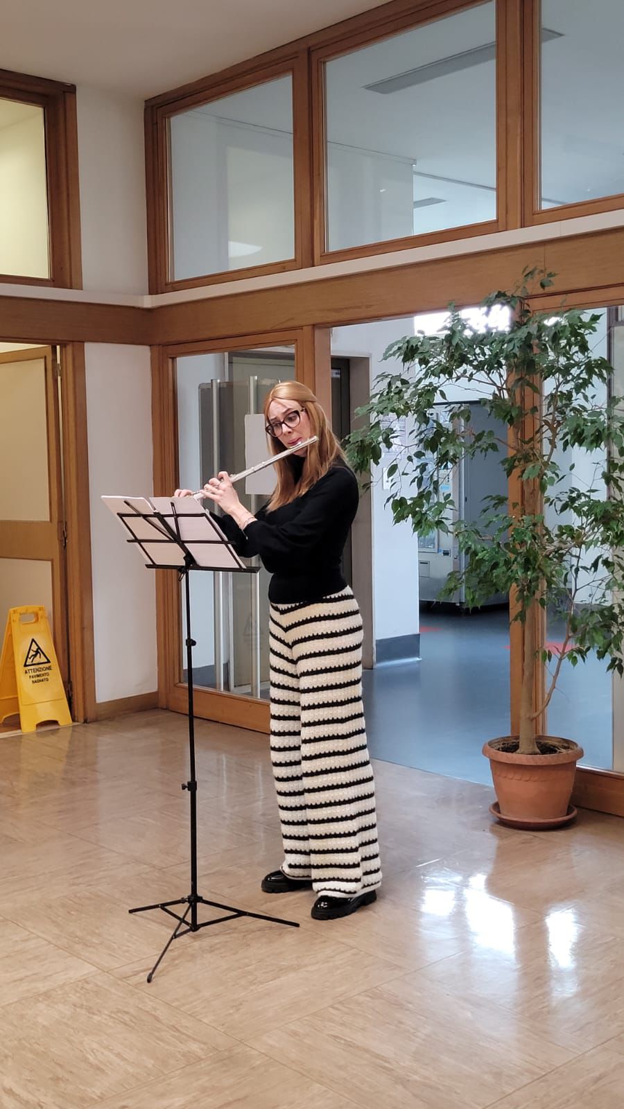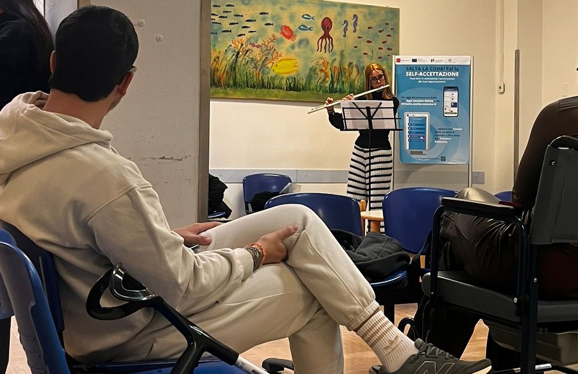 Il primo appuntamento ha visto protagonista la flautista Martina Veneri che si è esibita negli spazi del poliambulatorio, dell’allergologia, del Cup e nel reparto di dialisi. Altra musicista, la violoncellista, Carmen Dami. Le artiste erano accompagnate da Giulia Nuti, responsabile Comunicazione e Produzione A.Gi.Mus., e dai medici della Direzione ospedaliera, Daniele Cultrera e Roberta Murolo. Il 22 dicembre toccherà al fisarmonicista, Andrea Misirlis. Un momento di respiro e di sollievo, capace di portare benessere a tutti.