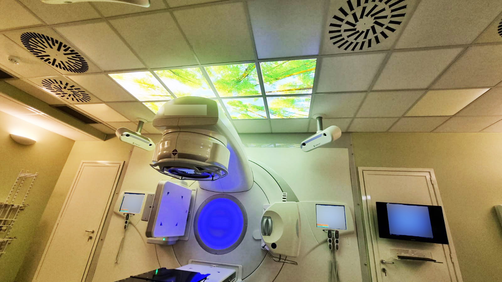Nei lavori di ristrutturazione del reparto particolare attenzione è stata dedicata all'umanizzazione degli spazi. La natura è il tema scelto per i pannelli decorativi sulle pareti ed i soffitti dei locali dedicati alla radioterapia. La foresta per un bunker, il mare per l’altro, suggestivi elementi di scenario per i numerosi pazienti oncologici che devono eseguire un trattamento radiante.