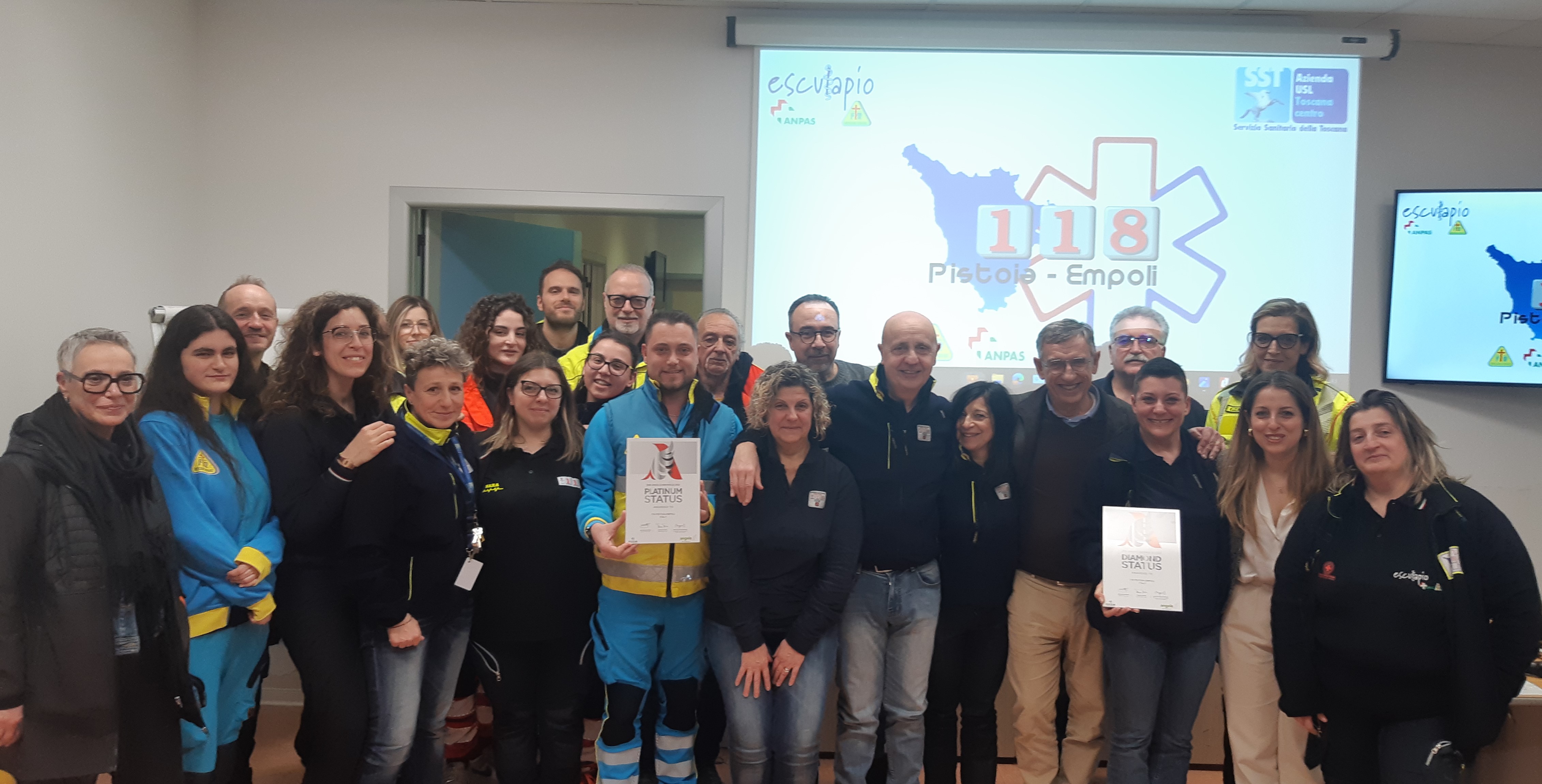 Alla consegna del premio erano presenti il direttore del Dipartimento di emergenza e area critica dell’Azienda USL Tc dottor Simone Magazzini, il direttore della Centrale Operativa e direttore Area aziendale emergenza territoriale dottor Piero Paolini, il direttore della Struttura complessa di Neurologia e fisiopatologia degli ospedali di Pistoia e Pescia e coordinatore dello Stroke System a livello aziendale il dottor Gino Volpi ed i rappresentanti delle Associazioni di Volontariato.
