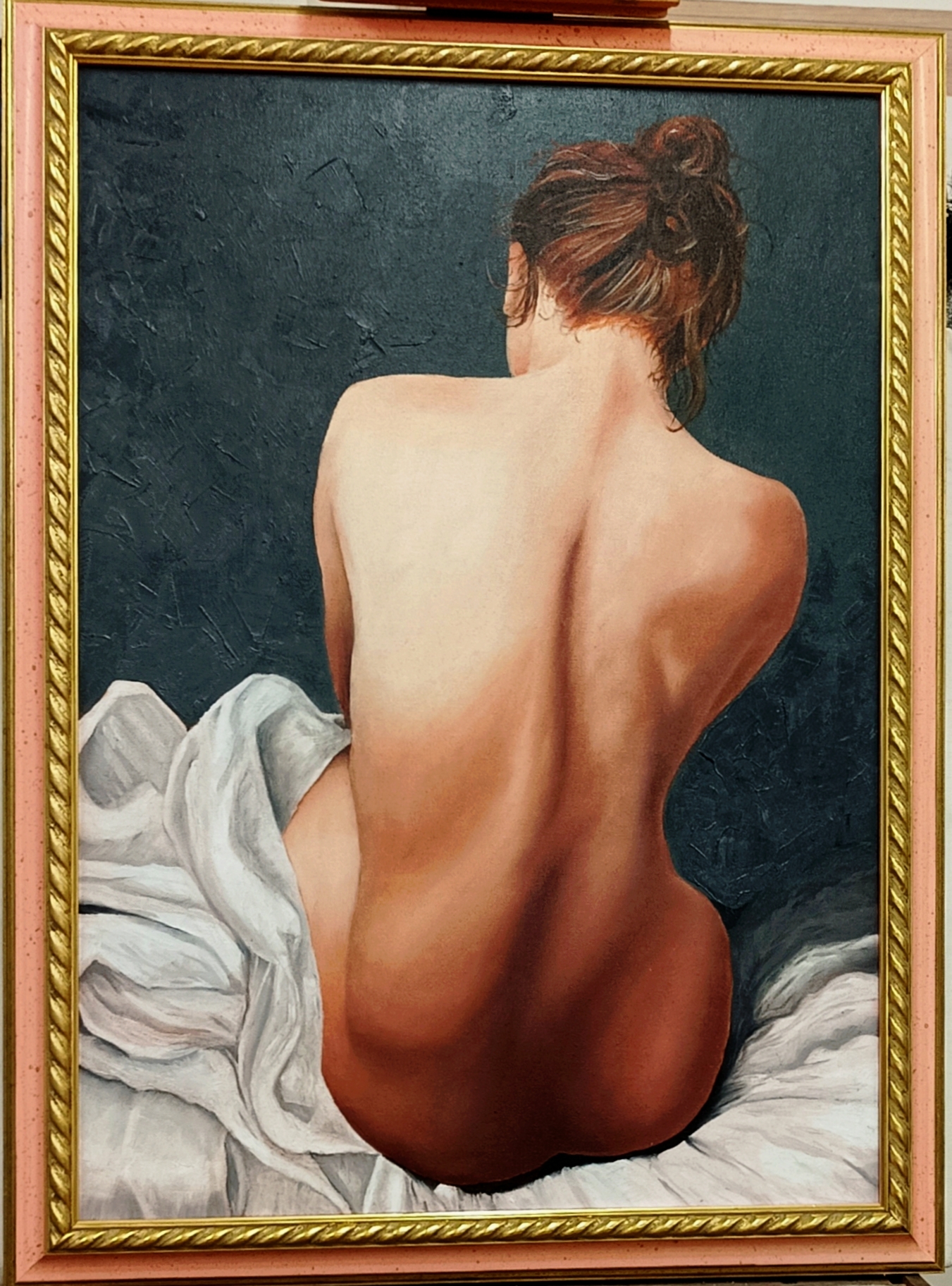 Il titolo dell’opera che raffigura la schiena di una figura femminile è “Il sole in prigione”: una donna, come un Sole che vuole vivere e risplendere della propria luce, è stata improvvisamente imprigionata da un nemico invisibile che vive dentro di lei. Nessuno, spiega l’autrice dell’opera, saprà quando se ne andrà, nessuno sa quando il Sole ritornerà a splendere.