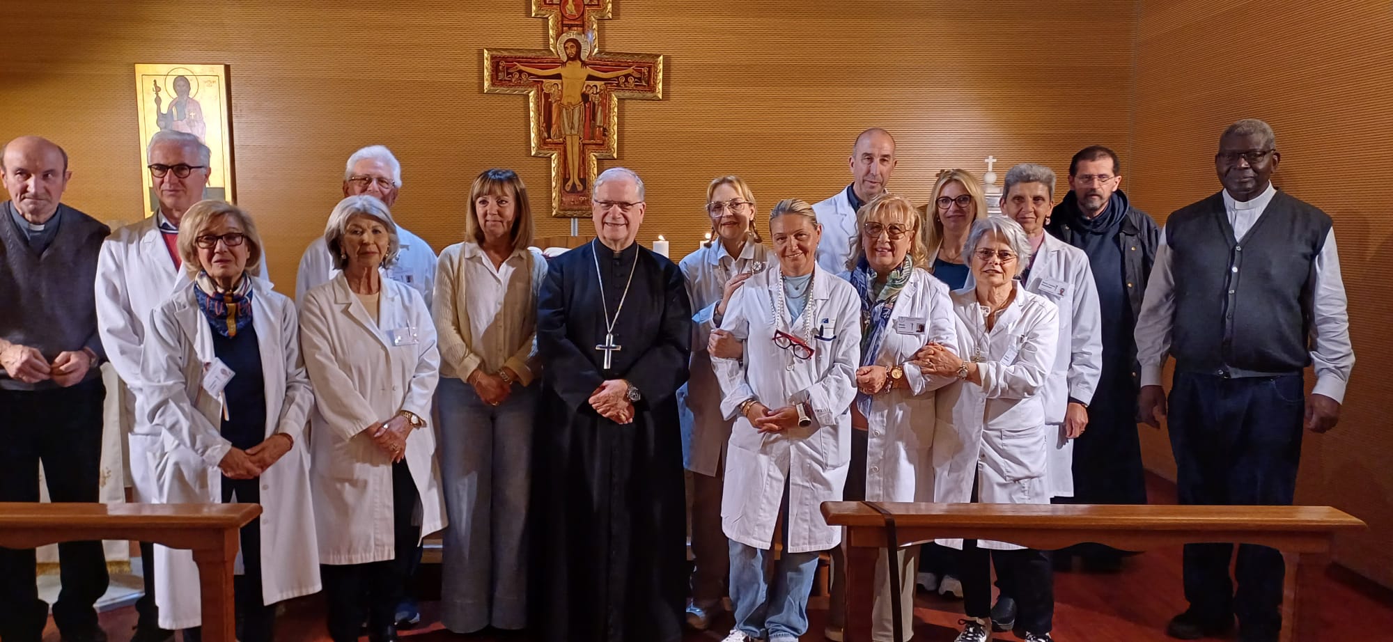 Alla messa hanno partecipato operatori sanitari e volontari della Cappellania, che portano conforto ai ricoverati con la loro attività, oltre ai fedeli.