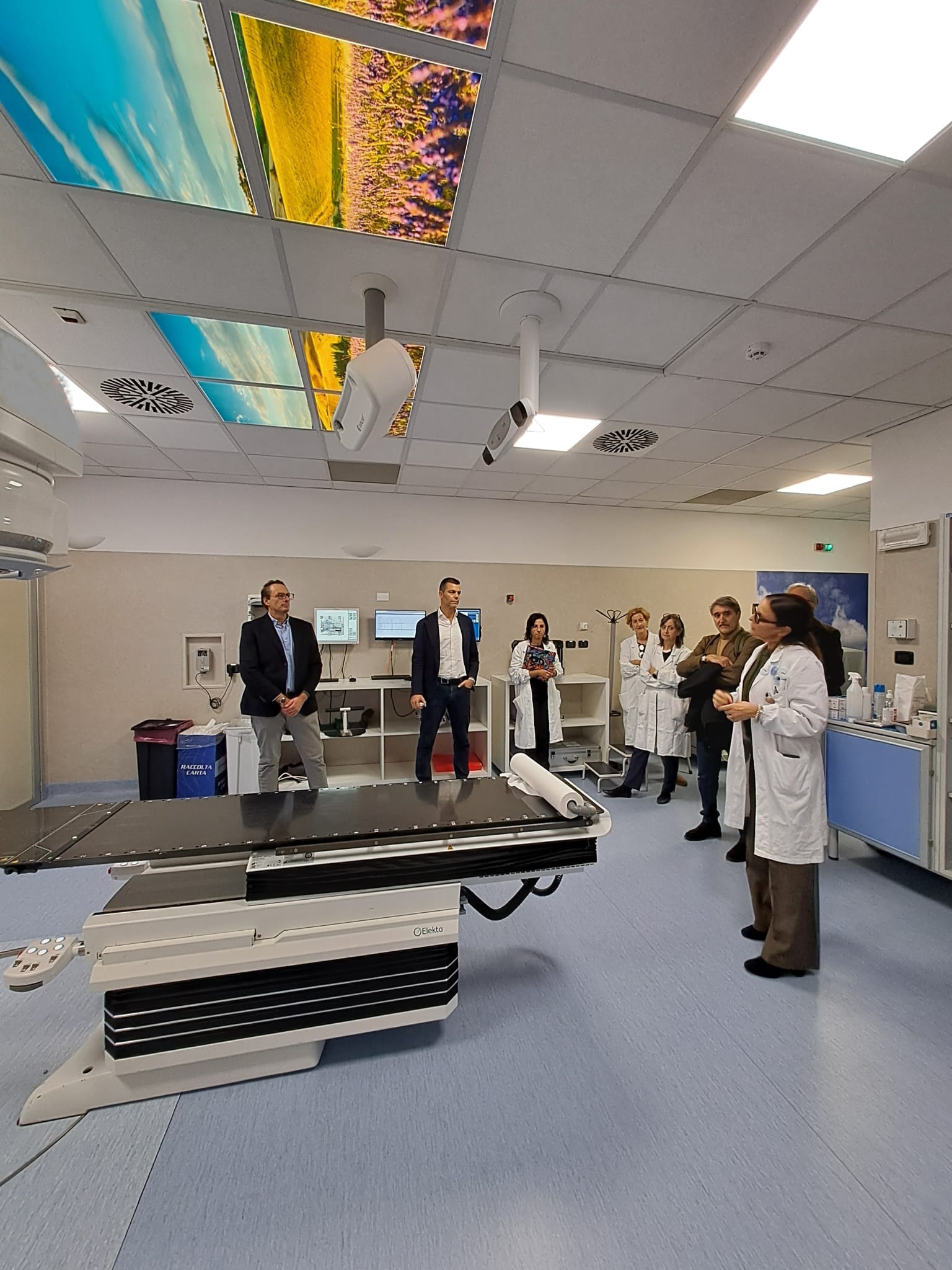 Radioterapia - La visita si è conclusa in uno dei reparti più all’avanguardia, la radioterapia. Nel 2024 sono stati installati in Radioterapia due acceleratori lineari di ultima generazione per garantire trattamenti rapidi, sicuri e precisi per tutti i pazienti. È stata acquisita anche una TC dedicata. Sono stati acquisiti inoltre molti accessori e dispositivi per completare l’implementazione tecnologica ed aumentare l'efficacia dei trattamenti offerti e, allo stesso tempo, ridurre i rischi di possibili tossicità sui tessuti sani peritumorali. Il reparto lavora in integrazione con il dipartimento Oncologico che ha sede presso Santa Maria Annunziata - attraverso la struttura di Oncologia medica e la struttura di Radioterapia oncologica dell’ospedale. Una integrazione che si realizza attraverso la condivisione di percorsi multidisciplinari e di una rete di lavoro tra le diverse equipe medico-infermieristiche dei diversi setting.