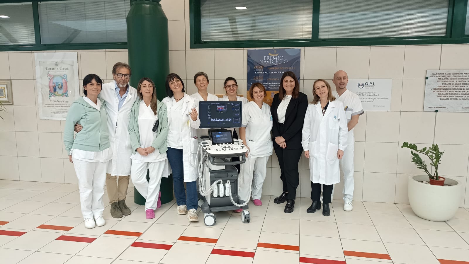 Empoli – Una sonda per l’ecocolordoppler che va ad arricchire e a specializzare ulteriormente la diagnostica per la patologia cerebrovascolare. La donazione da parte della Fondazione Empoli for Charity si è tenuta questa mattina nella Sala dell’Orologio dell’ospedale San Giuseppe. Sempre vicina e sensibile alle esigenze dell’ospedale, la Fondazione Empoli for Charity ha voluto donare l’apparecchio alla Neurologia del presidio San Giuseppe, diretta da Leonello Guidi. Alla cerimonia di consegna hanno partecipato questa mattina il Direttore Sanitario di presidio, Francesca Bellini, il Direttore di Neurologia, Leonello Guidi e il Dirigente medico neurologo, Mariella Baldini, con i medici neurologi Maria Letizia Bartolozzi, Sara Giannoni, i tecnici sanitari Cinzia Grisanti, Chiara Bandinelli, Serena Colon e Giacomo Martini mentre per la Fondazione la Charity manager, Alessia Puccini.