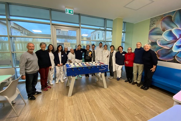 Un biliardino è stato donato dell'Associazione dei Familiari per la Salute Mentale "Nuova Aurora" al Servizio Psichiatrico di Diagnosi e Cura dell'Ospedale di Santa Maria Nuova. Il gradito regalo è stato consegnato nei giorni scorsi nel reparto dell’ospedale. Potrà essere posizionato anche all’esterno, andando così ad arricchire lo spazio di socializzazione dell’orto giardino che è già stato oggetto di attività riabilitativa orto vivaistica da parte dei pazienti di Santa Maria Nuova.
